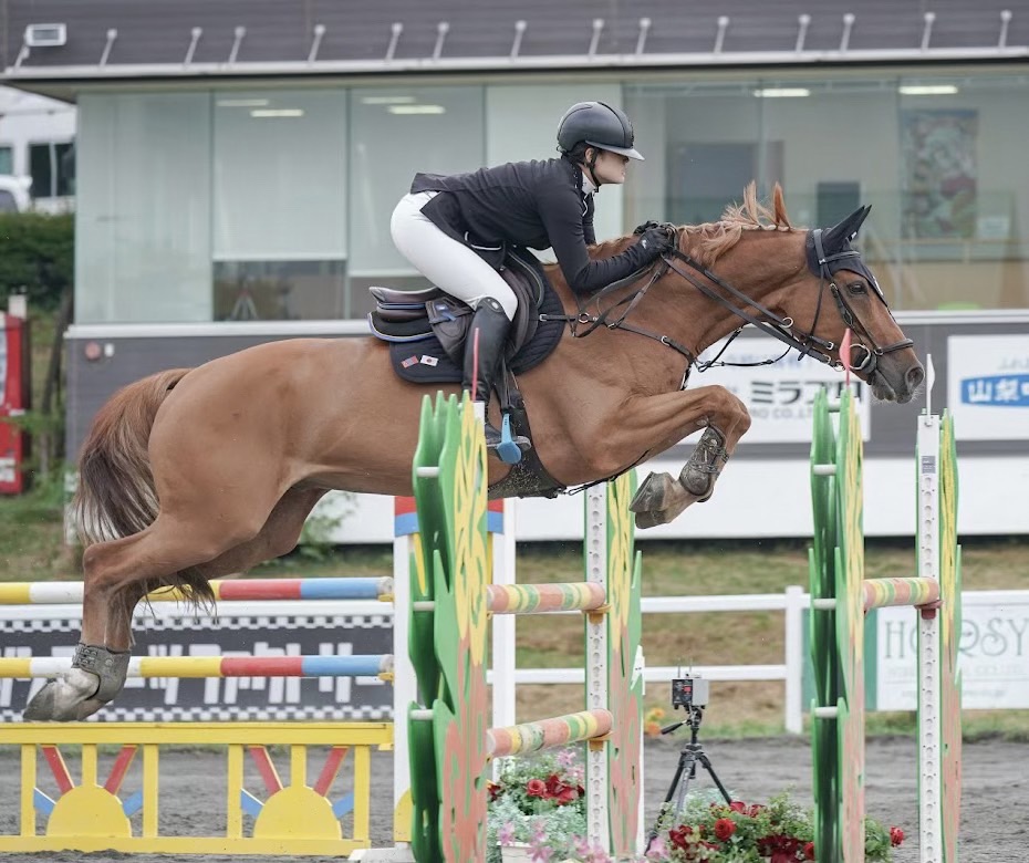 選手コメント:今年は最後のジュニア障害馬術大会なので結果を残したかったのですが、決勝では私の力不足でクリアラウンドで走行することができませんでした。長年出場してきたこの大会では悔しい思いや達成感を通してさらに上を目指して成長することができました。これからの馬や支えてくださる方に感謝を忘れず練習に励んだり、大会で成績を残せるように頑張りたいです。